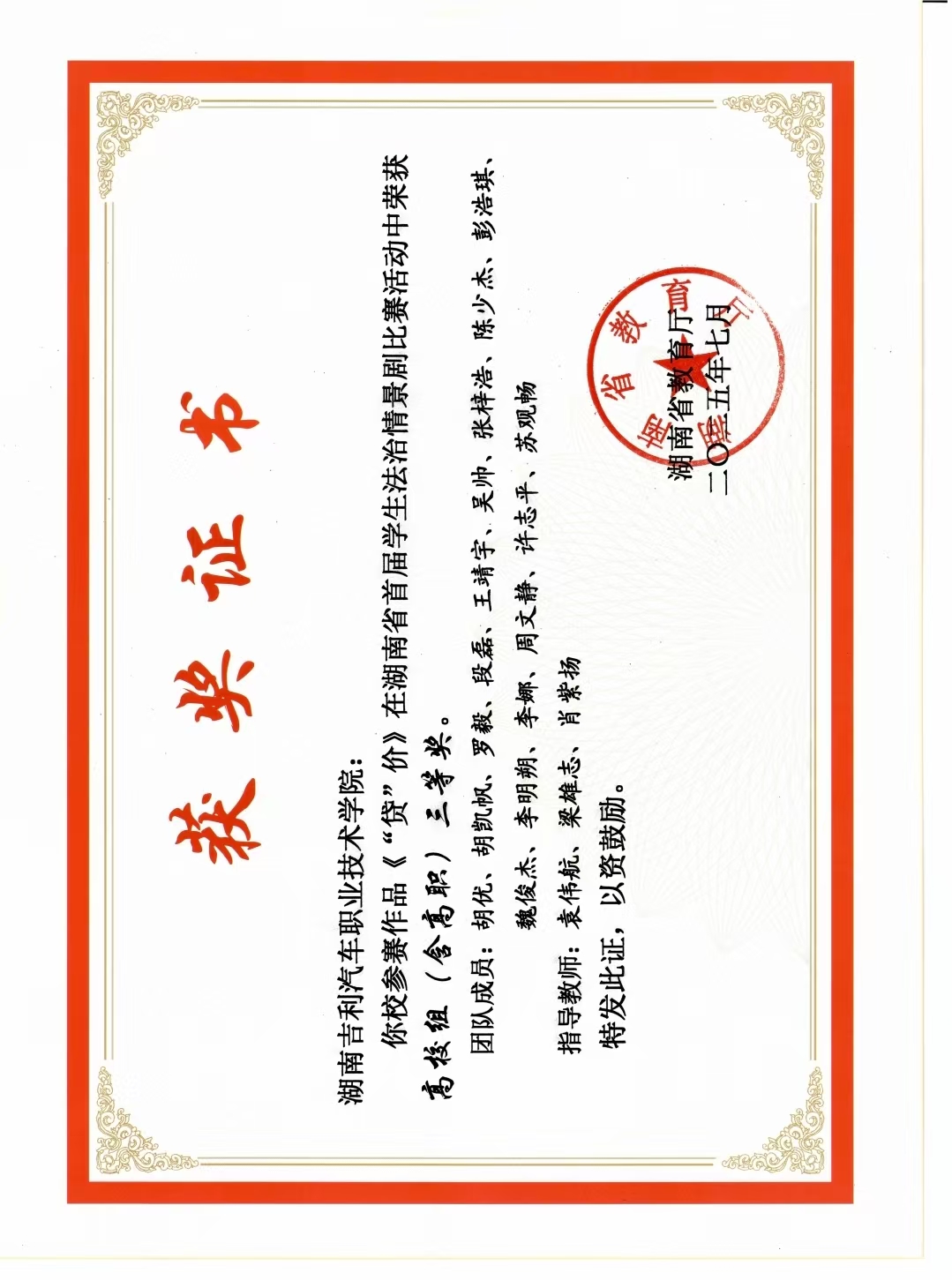 2025年湖南省首届学生法治情景比赛三等奖
