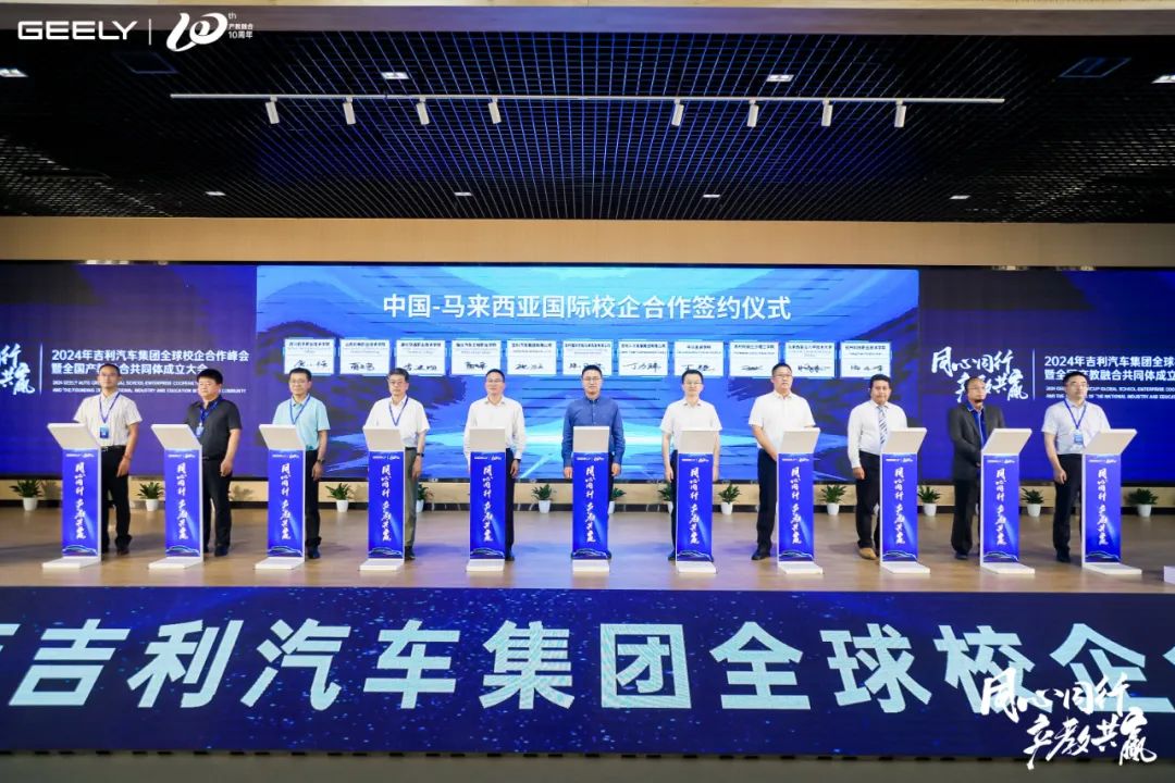 6月28日,2024年吉利汽车集团全球校企合作峰会暨全国产教融合共同体大会在陕西省西安市举行。吉利汽车集团与来自全球100余所合作院校、企业代表共同参加了以“同心同行 产教共赢”为主题的校企合作峰会。会议发布了吉利汽车集团合作总结与规划,表彰了2023年度校企合作优秀单位,全国行业产教融合共同体备忘书签署和揭牌成立,分析了中国汽车行业发展现状及发展趋势,就如何深化产教融合,创新培养模式,服务产教同行展开讨论;并举行了中国—马来西亚国际校企合作签约仪式和吉利汽车全球校企合作启动仪式。吉利汽车集团对过去一年在协同育人、技术创新和人才培养方面作出杰出贡献的合作伙伴进行了表彰。我校作为吉利汽车集团的“杰出贡献校企合作伙伴”,连续四年获得此项殊荣。十二年合作历程回顾12012年-2015年双方签订校企合作框架协议,明确了合作方向和目标。共同制定人才培养方案和人才标准,确保学生所学与企业所需紧密对接。双方共同进行人员选拔,优秀的学生可以进入吉利汽车集团实习和就业。 22016年-2020年双方共同开发了一系列以实践为导向、产品为导向的专业课程,提高了学生的实践能力和职业素养。双方共同建设了实训基地,为学生提供了更加真实的实践环境;双方共同制定了质量评价体系,确保人才培养的质量。学校还邀请吉利汽车集团的专家来校授课,指导学生实践,提高教学质量。学校与吉利汽车集团共同开展“现代学徒制试点项目”,选拔一批学生进入吉利汽车集团进行实习、实训;开展适应现代学徒制的校企双元育人机制、校企协同育人的双导师机制。32021年-2023年我校与吉利汽车集团的合作成果得到了社会各界的广泛认可。学校被评选为“产教融合优秀单位”,吉利汽车集团也对我校的人才培养模式给予了高度评价。双方还共同举办了多场职业技能大赛和人才招聘会等,为学生提供了强化技能和多元就业的机会。 42024年今年,我校与吉利汽车集团的合作再上新台阶。双方共同制定了新的产教融合发展规划,明确了未来合作的方向和目标,共同打造具有吉利职院特色的产业学院,每年设立20个产教融合的“订单班”。学校还将进一步扩大与吉利汽车集团的合作范围,拓展更多的合作领域和项目。自办学以来,我校与吉利汽车集团就形成了产教融合的共同体。通过“五共同模式”—共同制定培养方案、共同制定人才标准、共同进行人员选拔、共同进行课程设置、共同进行质量评价,双方携手共创了“校企”双主体育人的特色办学之路。今后,学校将继续加强产学研用一体化建设,共同推动汽车行业的创新与发展,为培养更多高素质技能型人才,全面建成社会主义现代化强国贡献力量。