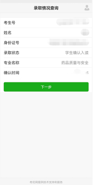 考生录取确认入读本校,考生还需再次确认自己本人的信息(可点击修改),确认无误后方可下一步。