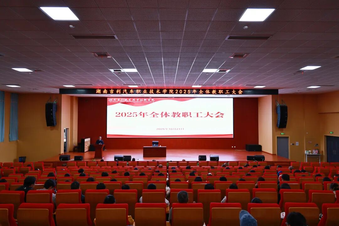 10月21日下午,湖南吉利汽车职业技术学院在二实训楼多功能报告厅召开2025年全体教职工大会。会议由校党委书记陈飞主持,全体校领导、理事会成员及全体教职工参加会议。会议聚焦人事管理制度改革、招生工作体系优化与服务理念全面升级。人事处对《分类管理办法》进行解读,指出新办法旨在通过建立科学的分类评价与激励机制,为落实“人才强校”战略、全面激发教职工队伍的创造潜力提供制度保障。常务副校长蒋伟民作招生工作报告,系统总结2025年工作成效,并明确了2026年招生工作的实施路径与创新举措。马卫平校长以“增强服务意识,提升服务质量”为题作主旨讲话,系统阐述了以“服务者”为核心的现代学校治理新理念。他指出,校长及管理团队应从传统的“行政权威”向“服务者与赋能者”彻底转型,将服务师生作为一切工作的根本出发点。马卫平强调,这一角色转变的基石在于牢固树立“管理就是服务”的价值观。他要求全校必须坚决破除“官本位”思想,将工作重心真正落到服务学生健康成长和助推教师专业发展上来。围绕如何践行服务理念,他进一步指出,对学生的服务,要体现在尊重人格、赋予自信,成为其“成长的守护者”与“梦想的点燃者”;对教职工的服务,则应遵循“赋能而非掌控、共情而非说教、引领而非命令”的原则,将平等、尊重、理解、关爱融入日常工作,积极营造支持型、成长型的育人生态。他表示,“师生满意是工作的根本标准,师生成长是办学的最终追求”,并号召全体教职工将服务意识内化于心、外化于行,共同为推动学校高质量发展贡献力量。本次大会凝聚了发展共识,明确了改革方向,增强了全校上下的使命感与行动力。与会教职工纷纷表示,将以此次大会精神为指引,将服务理念转化为实际行动,共同为学校高质量发展贡献力量。