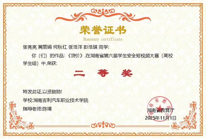 2025年学生安全短视频二等奖