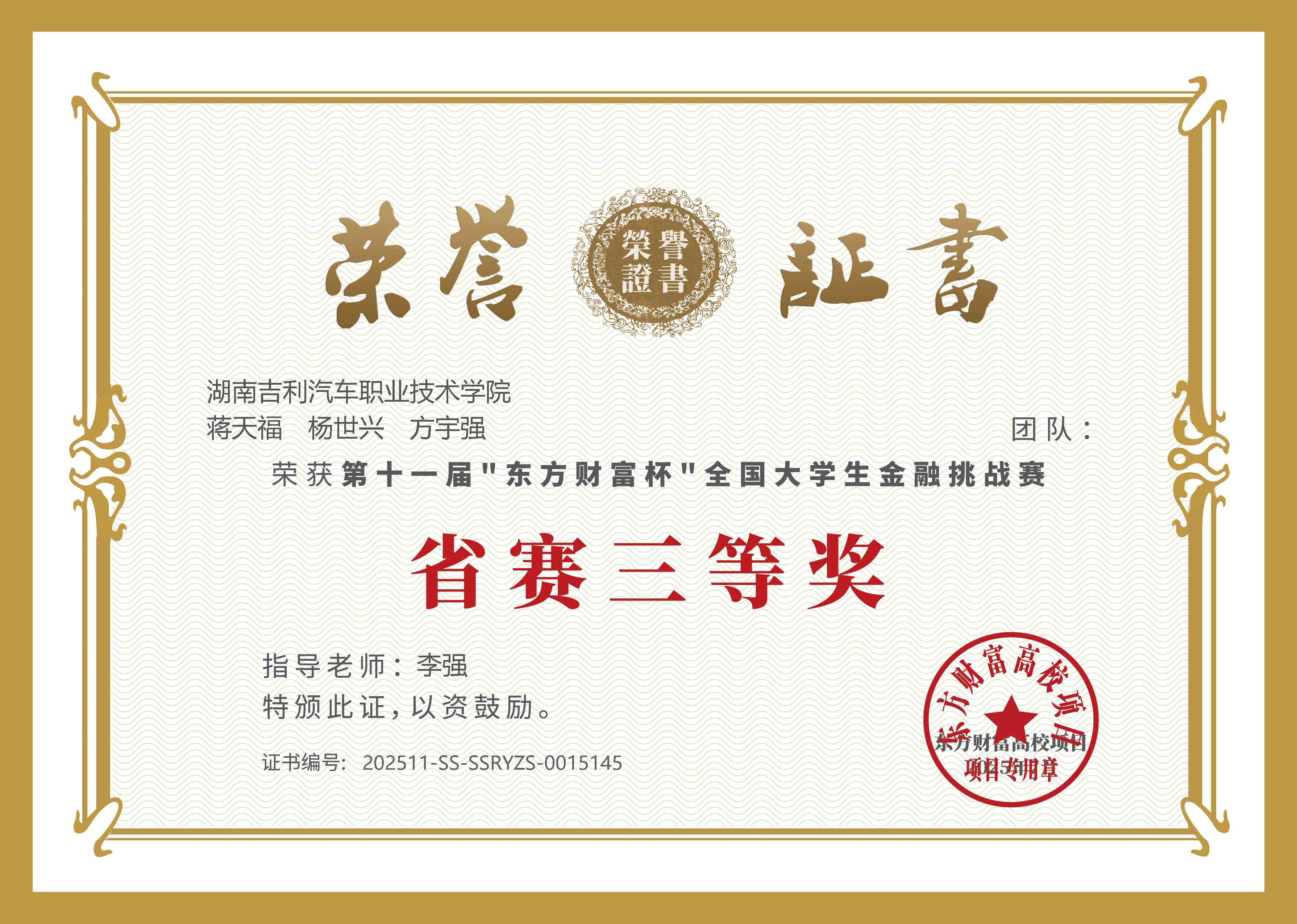 2025年东方财富杯三等奖