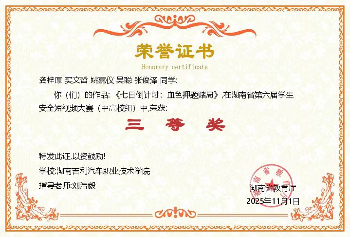 2025年学生安全短视频大赛三等奖