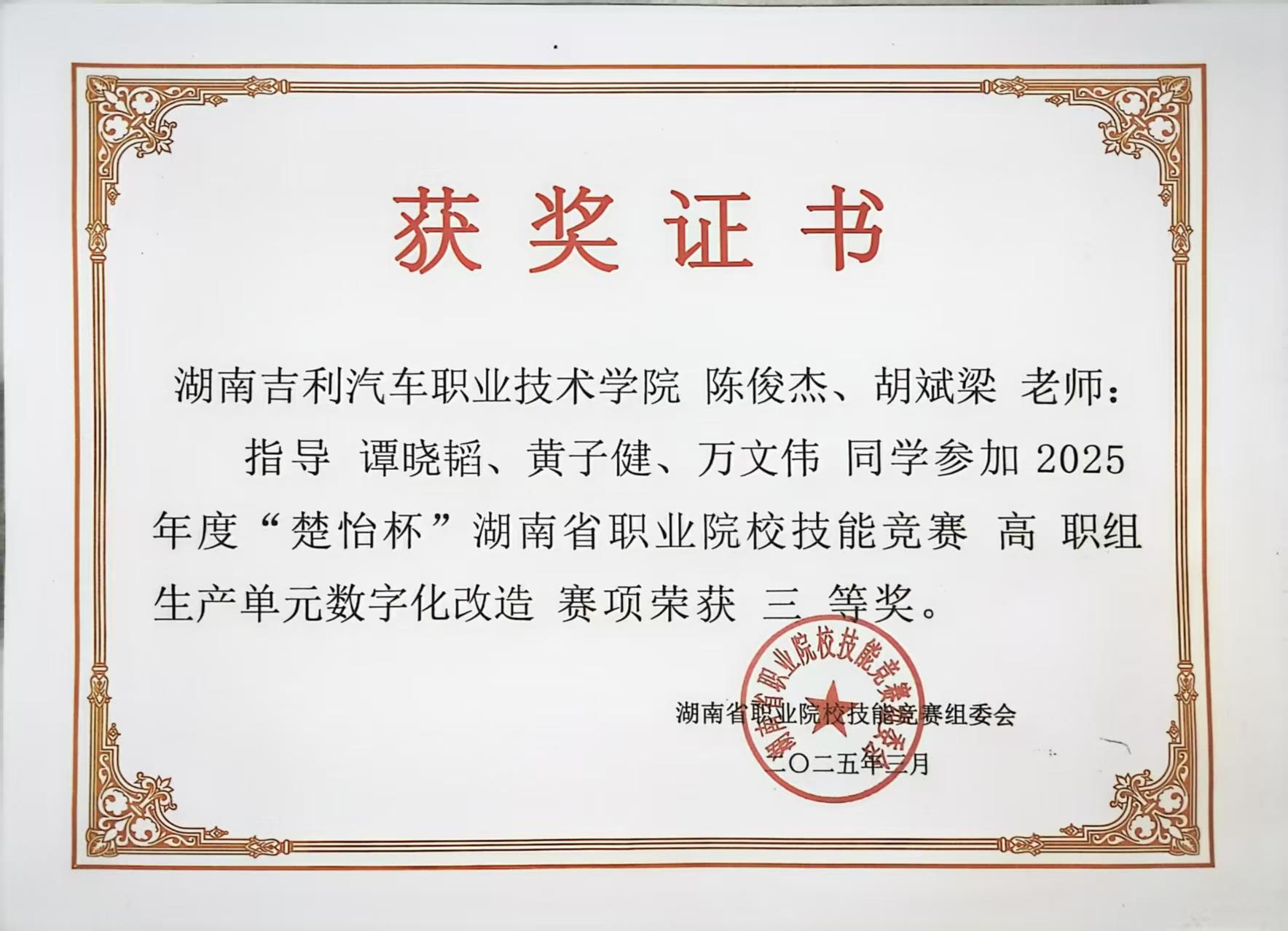 2025年楚怡杯生产单元数字化改造三等奖